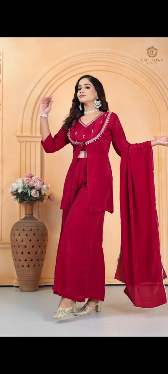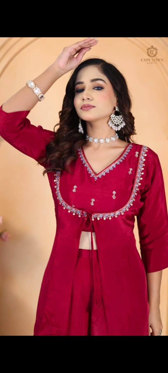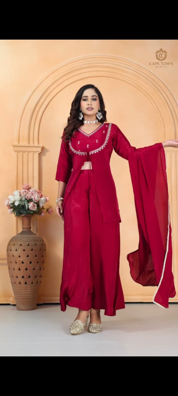 Quickshop MUSLIN SILK INDO TWO PIS PLAZO PAIR WITH HAND WORK, DIVIDER PLAZO... Compare