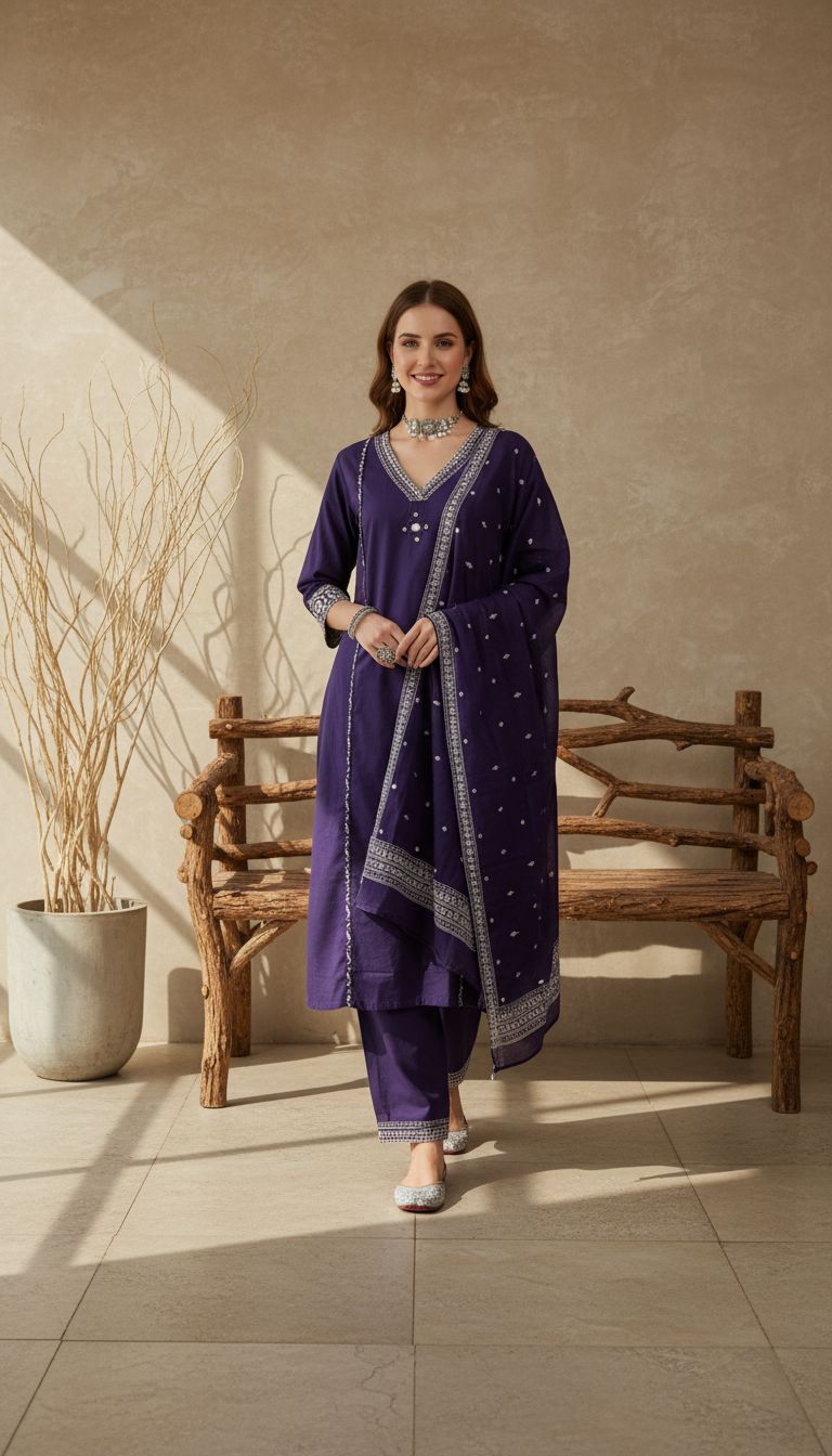 Colors Available: 1. Deep Royal Purple: Ek bold aur festive look ke liye.