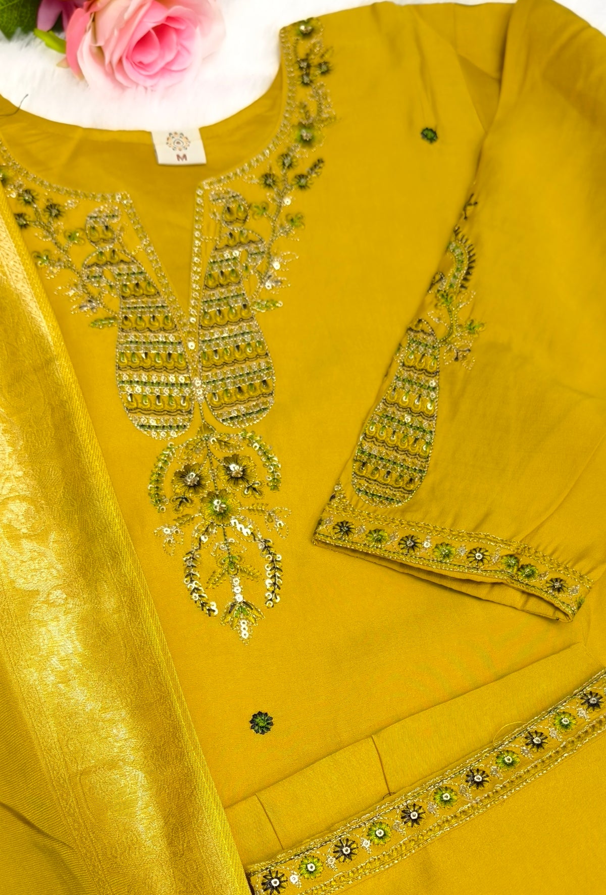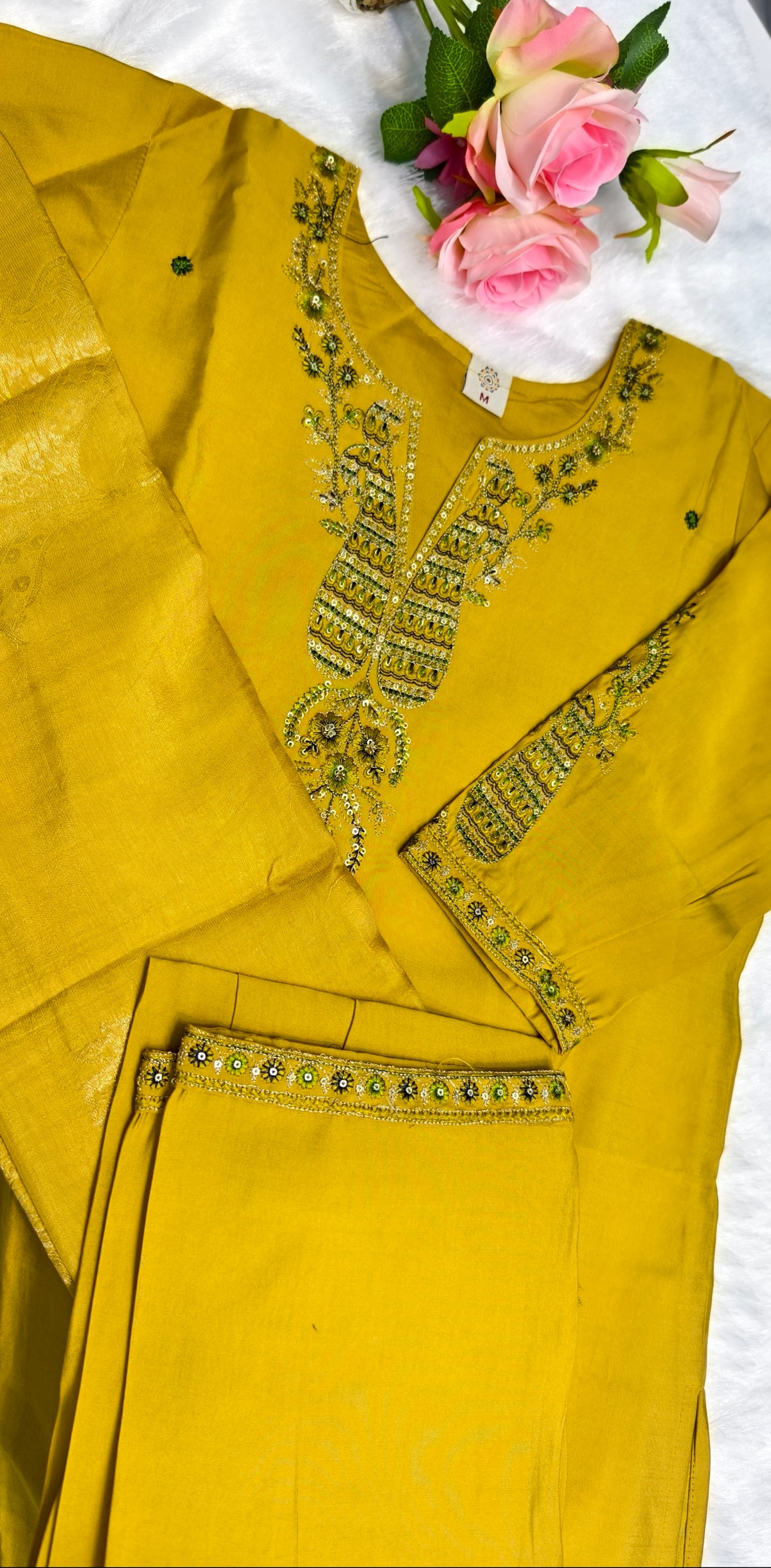 Quickshop MUSLIN SILK INDO TWO PIS PLAZO PAIR WITH HAND WORK, DIVIDER PLAZO... Compare