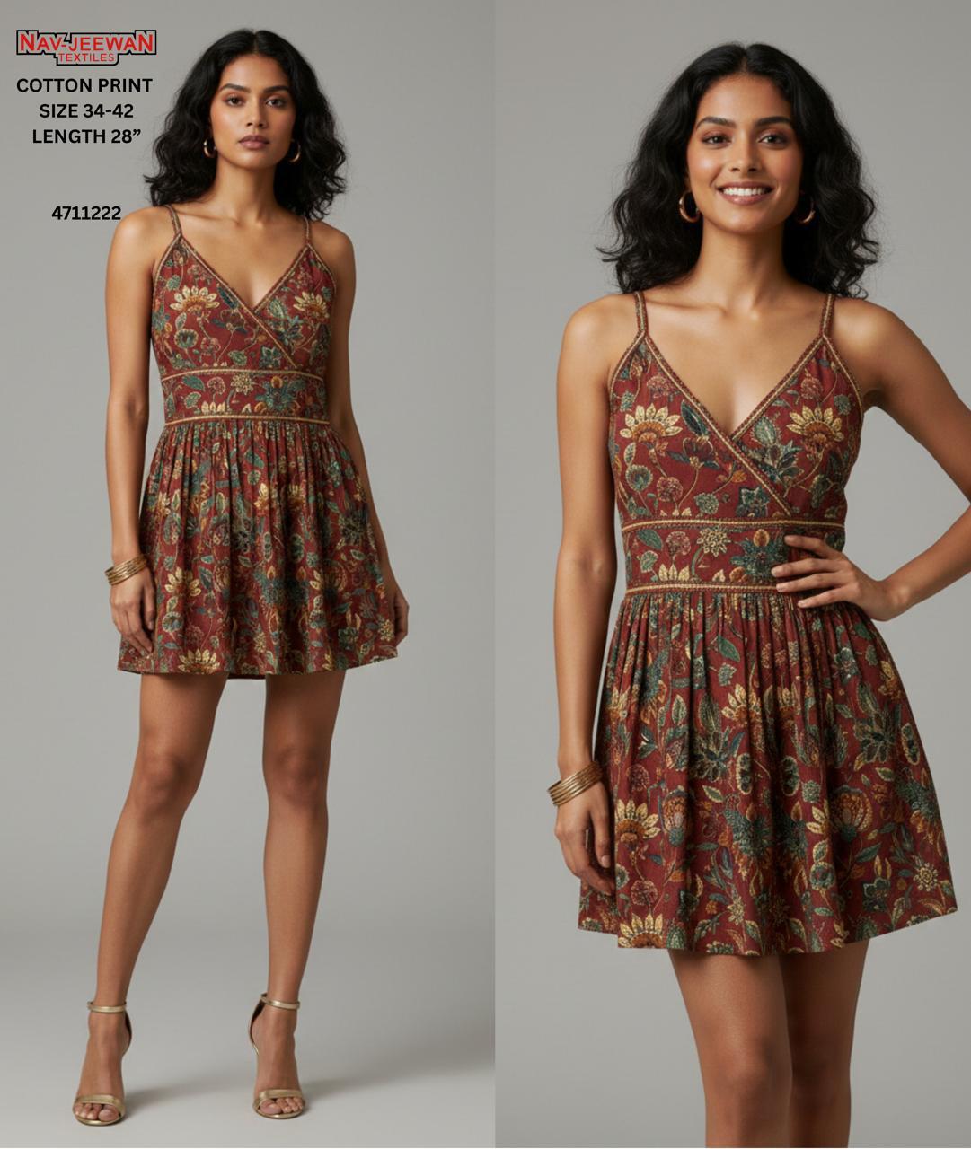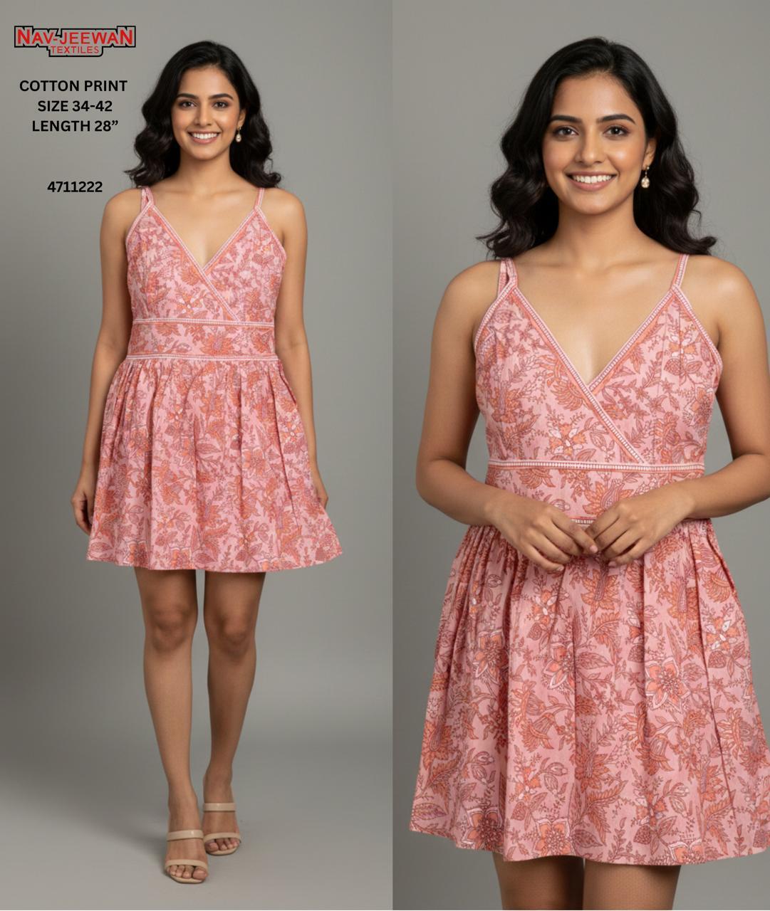 "Summer vibes in our new Cotton Print Short Dress! 🌿 Light, breezy, and super stylish. Perfect for your next getaway. Available now in sizes 34-42."